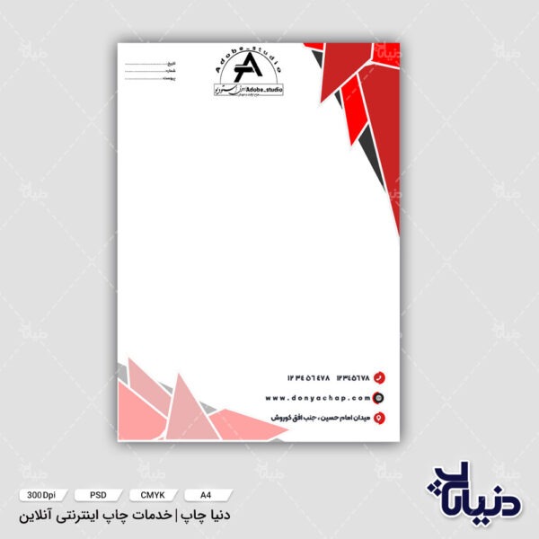 - در طراحی سربرگ، تمامی معیارهای چاپ اعم از رنگ مناسب، حاشیه اطمینان (برش بعد از چاپ) و فضای کافی برای درج متون رعایت شده است.